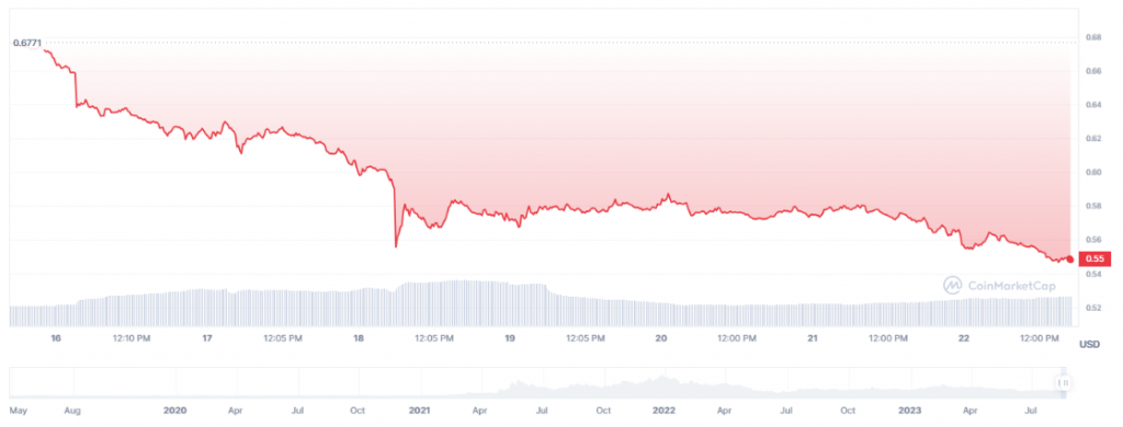 Polygon (MATIC) has entered a phase of consolidation, hovering just above the crucial $0.50 mark. The coin’s recent retracement to June lows has garnered significant attention from bullish investors, even as the broader crypto market remains hounded by uncertainties and price plunges. With the cryptocurrency market experiencing a notable downturn over the past week, Polygon’s native token, MATIC, has not escaped unscathed. The token’s value has witnessed a decline of nearly 19% over the span of seven days, further amplified by a 4% drop in the last 24 hours alone. The current CoinGecko-listed price stands at $0.547. MATIC price action today. Source: Coingecko The present state of MATIC at $0.54 marks its lowest valuation this year, with year-to-date lows just shy of the June benchmark of $0.59. The recent downturn is closely linked to the broader market crash, during which Bitcoin suffered a plunge to $26,000, triggering nearly $2 billion in liquidations. Technical Indicators Signal Caution For MATIC Technical indicators echo the prevailing bearish sentiment surrounding MATIC. The Relative Strength Index (RSI) notably retreated to the oversold territory on August 17th and continues to linger there. This persistent oversold condition underscores the ongoing selling pressure that has yet to abate. Related Reading: XRP Price At A Crossroad: Will $0.5 Support Trigger A Correction Shift? MATIC market cap at $5.1 billion today. Chart: TradingView.com Similarly, the Chaikin Money Flow (CMF) has maintained a position below zero, indicating a subdued influx of capital. This trend accentuates the bearish outlook for MATIC in the spot market. Navigating The Road Ahead For Polygon Despite its recent dip, MATIC encountered a measure of stabilization at the bullish order block (OB) situated above the $0.50 level. Notably, this level aligns with the June lows, which have historically facilitated successful rebounds upon retesting. This downturn has visibly impacted investors, leading to growing losses in their portfolios. However, the overall strength of Bitcoin—whose performance has been lackluster—might potentially hinder MATIC’s ability to stage a robust recovery. MATIC seven-day price action. Source: CoinMarketCap Related Reading: Ordinals Sales In Freefall: 97% Decrease Sparks Worries About Bitcoin NFT’s Extinction As the crypto market grapples with its recent setbacks, the fate of MATIC remains entwined with the broader industry trends. Investors are keenly watching for signs of a substantial reversal in MATIC’s fortunes, gauging whether it can successfully break free from the gravitational pull of the current market downtrend. In the midst of this challenging environment, MATIC enthusiasts and market analysts alike are closely monitoring the coin’s technical indicators and its ability to hold above the critical support level of $0.50. Only time will tell whether Polygon’s MATIC can weather the storm and reclaim its upward trajectory. (This site’s content should not be construed as investment advice. Investing involves risk. When you invest, your capital is subject to risk). Featured image from Cointribune