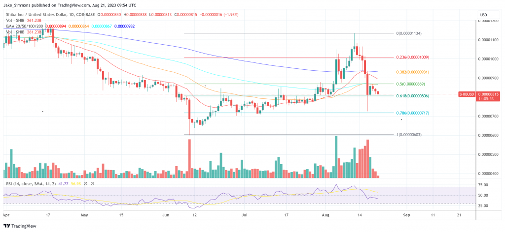Shibarium, the much-anticipated layer-2 network of Shiba Inu is back online but remains under the radar, confined to an extensive private test phase. Shytoshi Kusama, the project’s lead developer, unveiled this update on Saturday. In his remarks, Kusama assured the community that they have resolved all technical challenges previously encountered on this layer-2 platform. Kusama mentioned, “Shibarium is currently live (but in private mode) producing blocks as normal.” He further emphasized the importance of ensuring optimal scaling and functionality before a public re-release, suggesting that the SHIB development team is prioritizing caution above all. Notably, Shibarium’s initial launch wasn’t without its issues. Block production had come to a standstill on the network just last week. Shibariumscan, the network’s designated explorer, indicates that the most recent block on the Shibarium mainnet was produced on Thursday. Related Reading: Shiba Inu Whale Transfers 4.6 Trillion Tokens After A 24-Hour Safekeeping However, among the many challenges faced, the most significant was the unexpected trapping of 965 ETH, valued approximately at $1.7 million during that period. The predicament arose because of the massive, unexpected influx of traffic on the network immediately post-launch, with 1000 ETH tokens and 600,000 BONE tokens deposited within the first 15 minutes alone. This rush resulted in Shibarium recording over 160 million compute units in merely half an hour. Kusama, providing a silver lining, stated that they’ve since amplified Shibarium’s scaling and capacity by a staggering 1,500%. With such promising advancements and the dedication shown by the team, many Shiba Inu enthusiasts are ardently waiting for Shibarium to open its gates to the public. How High Can Shiba Inu Surge Post Shibarium Restart? The ripples of the Shibarium launch and its subsequent hiccups are vividly evident in SHIB’s recent price dynamics. A euphoric surge was observed around August 12, where SHIB’s price ascended to a 4-month high at $0.00001134. However, post the Shibarium’s temporary freeze, SHIB’s value plummeted sharply. This decline was so drastic that SHIB’s price slid below the support levels of all major daily moving averages. Related Reading: Shiba Inu Price Shows Resilience As Shibarium Reboots: SHIB Price Targets The meme coin’s recent trajectory saw it dwindling precariously close to the 78.6% Fibonacci retracement mark at $0.00000717 just last Thursday. However, SHIB price managed to claw its way back, finding support above the 61.8% Fibonacci retracement level pegged at $0.00000806. A brief bounce was witnessed, but resistance at the 50% Fibonacci retracement level and the 100-day EMA at $0.00000869 thwarted its progress, causing it to retrace its steps back towards the 61.8% level. With the potential public restart of Shibarium on the horizon, there’s a beacon of hope for SHIB’s price. A successful relaunch might propel SHIB to soar by 37% and retouch its 4-month peak at $0.00001134. But this ascent won’t be without challenges. The Shiba Inu price will need to navigate a maze of resistance, most notably the area between the 100-day EMA at $0.00000867 and the 50% Fibonacci retracement level at $0.00000869, the area between the 200-day EMA at $0.00000932 and the 38.2% Fibonacci retracement level at $0.00000931, and the 23.6% Fibonacci retracement level at $0.00001009. Featured image from Coins.ph, chart from TradingView.com