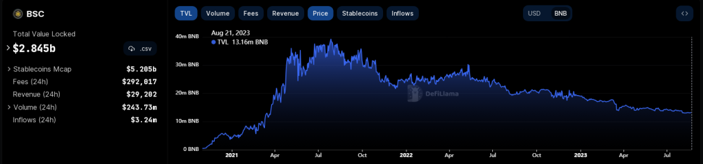 Binance Coin (BNB) faced a weekend of market indecision, leading the altcoin into a range-trading scenario. The coin, which had dropped below the $220 mark on August 18, experienced fluctuations between the narrow range of $213 to $220 over the course of the weekend. As of the latest update, CoinGecko reported the current BNB price at $216, marking a 0.3% decline over the past 24 hours and a significant seven-day slump of 10%. Related Reading: Hedera (HBAR) Rises As Weekend’s Top 50 Sole Gainer With 14% Rally Binance Coin (BNB) price action today. Source: Coingecko The past year has been marked by significant challenges for BNB, largely attributed to the regulatory uncertainties surrounding its parent company, Binance. The situation escalated in June when the US Securities and Exchange Commission categorized BNB and its sibling token, Binance USD (BUSD) stablecoin, as securities within the context of its lawsuit against the cryptocurrency exchange. Despite vehement opposition from Binance and the exchange’s chief, the impact on BNB’s demand has been evident, with cautious investors steering clear of assets entangled in regulatory ambiguities. Binance Coin Market Dynamics And CEO’s Stance Binance CEO Changpeng “CZ” Zhao recently took to the social media platform X (formerly Twitter) to address growing speculation that Binance was proactively shoring up BNB’s price to prevent it from dipping below $212. CZ refuted these claims, asserting that BNB’s price was, in fact, shaped by market forces. He challenged the notion of artificial price support and emphasized that the coin’s valuation was ultimately determined by its interaction with the open market. This declaration marked an attempt to alleviate concerns that the exchange was manipulating the token’s price. And where did the $212 magic number come from? #BNB price is determined by the market. A $30m re-buy is less than 4% of a single day’s volume. 🤷♂️ — CZ 🔶 Binance (@cz_binance) August 19, 2023 On-Chain Activity And DeFi’s Influence The decline in BNB’s price can also be attributed to diminished on-chain activity on the Binance Smart Chain, a prominent layer1 smart contract blockchain. Decentralized Finance (DeFi) activities have experienced a significant contraction, with the weekly exchange volume plummeting from its peak of $24.70 billion to a mere $2.34 billion, as per DeFillama data. Source: Defillama Moreover, the total value of assets within the Binance Smart Chain ecosystem has dwindled by a staggering 87%, now resting at $2.84 billion, according to DeFillama’s statistics. Related Reading: Ordinals Sales In Freefall: 97% Decrease Sparks Worries About Bitcoin NFT’s Extinction Binance Coin: Navigating The Crossroads As BNB navigates these uncertain waters, traders and investors remain at a crossroads, carefully assessing the potential for regulatory clarity, market dynamics, and the revitalization of on-chain activities to influence the coin’s trajectory. BNB market cap currently at $33 billion. Chart: TradingView.com The weekend’s range trading and the response from Binance’s CEO underscore the complexities of BNB’s journey, as it strives to regain its footing amidst a landscape marked by challenges and opportunities. (This site’s content should not be construed as investment advice. Investing involves risk. When you invest, your capital is subject to risk). Featured image from Siam Blockchain