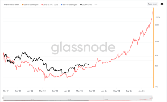 The general crypto market has recorded a slight decline in the last week, with the market leader Bitcoin losing 0.78% of its value over the last seven days. This price loss amplifies BTC’s negative monthly performance, pushing its total loss in the last 30 days to around 5.38%, according to data from CoinMarketCap. At the time of writing, the premier cryptocurrency is trading at around $29,022, with its daily trading volume valued at $10.746 billion, having gone down 12.54%. However, amidst Bitcoin’s current downtrend, it appears the token’s larger performance could be indicating a bullish market in the coming months. Related Reading: These Are The Factors That Could Lead To Another Bitcoin Rally: ARK Invest Bitcoin Could Be Repeating Historic Bullish Price Cycle – What Does This Mean? On Aug. 4, crypto analyst Ali Martinez on social media platform X posted that Bitcoin is likely repeating a popular bullish cycle of its price history. According to Ali, the token current’s price trajectory since attaining its all-time high in November 2021 is identical to its price movement between 2013 and 2017 based on data from Glassnode. Bitcoin price performance since cycle ATH | Source: Glassnode If this analysis proves correct, with Bitcoin mirroring its 2013-2017 price cycle, it means Bitcoin is expected to show little price movement in August 2023 and September 2023, perhaps recording some slight gains along the way. However, Glassnode data shows BTC could experience a price upswing in October 2023, maintaining a bullish momentum all through this month. Thereafter, the token is expected to undergo a major re-correction finding support in the first week of November 2023. Based on the reference price cycle, Bitcoin could then experience a significant price drop in the last month of 2023 but close the year in a strong consolidation zone. Source: Glassnode Beyond 2023, the BTC market could also be set for huge profits in 2024 and 2025 if Bitcoin is indeed repeating the 2013-2017 price cycle during which the market leader famously gained by over 1600%. However, all investors are reminded that predictions are not guaranteed and should not be considered as investment advice. Rising Optimism In The BTC Market In other news, it appears there is a rising positive sentiment around Bitcoin, with a significant increase in its accumulation by key holders. According to a report by on-chain analytics firm Santiment, BTC whales and sharks are currently swapping their BUSD and DAI for more BTC. Santiment noted the situation was quite the opposite back in July, with the BTC heavyweights shedding some of their holdings. However, the analytics firm reports that if the current trend is maintained, we could see BTC trade above $30,000 again. Related Reading: Bitcoin NVT Shows Bearish Crossover, Price Drop Incoming? In the last few weeks, Bitcoin has remained among the headlines, with much discussion on the ongoing Bitcoin ETF race in the US. On Aug. 2, Bloomberg ETF analysts James Seyffart and Eric Balchunas rated the approval chances of the first spot Bitcoin ETF at 65%. This is an impressive upgrade from 50% some weeks ago and 1% a couple months ago. BTC trading at $28,979 on the weekly chart | Source: BTCUSD chart on Tradingview.com Featured image from Forbes, chart from Tradingview.