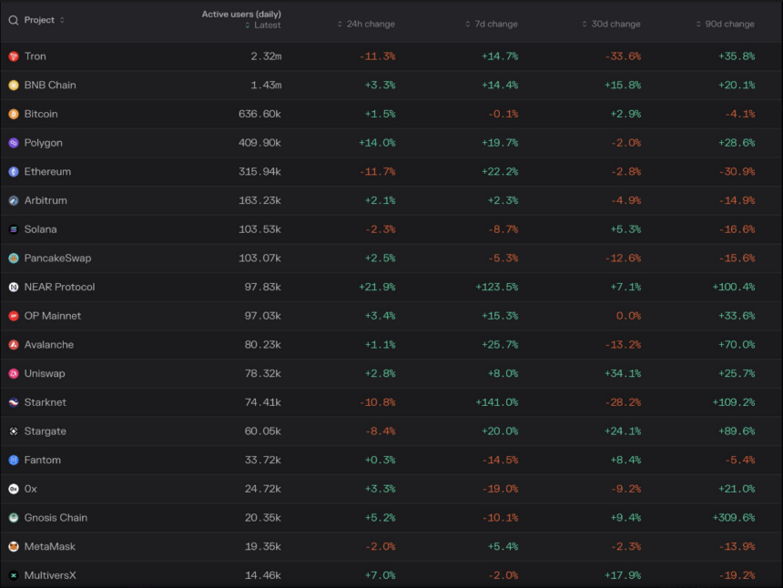 BNB Chain, the blockchain platform powering the Binance ecosystem, has recently emerged as a formidable force in the crypto world, surpassing its competitors in terms of daily active users. This surge in user engagement has coincided with a surge in the value of the BNB token, which has experienced a steady increase of over 5% within a single week. As BNB’s daily active users continue to soar, one can’t help but question the overall impact of this unprecedented growth. What lies behind BNB’s ability to outshine its rivals and attract a growing user base? Is there a hidden catalyst propelling its value upwards? Moreover, as these metrics diverge from the norm, skeptics begin to raise valid concerns about the sustainability and potential risks associated with BNB’s rise. BNB Chain Surpasses BTC, ETH In Daily Active Users In the ever-evolving landscape of blockchain technology, BNB Chain has recently achieved a significant milestone, surpassing renowned chains such as Bitcoin (BTC) and Ethereum (ETH) in terms of daily user activity. According to a BNB analysis, the chain secured the second position, solidifying its position as a formidable player in the crypto world. Related Reading: Cardano Development Activity Dropping – What Does It Mean For ADA Price? Token Terminal’s data also revealed that BNB Chain boasts an impressive count of over 1 million daily active users, a testament to the platform’s growing popularity and appeal. This notable achievement is even more remarkable considering the longstanding dominance of Bitcoin and Ethereum, which have traditionally held the top positions in the cryptocurrency market. Source: Token Terminal The BNB token has also made waves in the market. Currently priced at $248.78, it experienced a slight setback with a 3.5% slump in the past 24 hours. However, the token quickly bounced back with a decent 5.4% increase in the last week. Source: CoinMarketCap Mixed Signals While the BNB Chain has garnered widespread enthusiasm and positioned itself as a competitive player in the crypto market, recent data from Santiment reveals a nuanced picture. Despite the chain’s impressive user base, as measured by daily active addresses, the level of excitement appears to be relatively consistent without any notable spikes, according to Santiment’s analysis. Source: Santiment Related Reading: Optimism (OP) Rides The Wave Of Today’s Crypto Surge With 15% Rally When examining the Total Value Locked (TVL) metric, which indicates the amount of assets held within a blockchain protocol, BNB Chain falls behind Ethereum and Tron, occupying the third position. As of the latest data, the TVL for BNB Chain stands at approximately $3.4 billion, highlighting room for growth in this area. Total cryptocurrencies market cap at $1.18 trillion. Chart: TradingView.com Similarly, the stablecoin market cap on the BNB Chain has exceeded $5 billion. However, Santiment’s charts indicate that both the TVL and market cap metrics have yet to exhibit a significant upward trend, despite the chain’s growing user base. This suggests that while BNB Chain boasts a higher number of active users, the overall TVL and market cap have not fully reflected this growth. (This site’s content should not be construed as investment advice. Investing involves risk. When you invest, your capital is subject to risk). Featured image from Gadgets 360