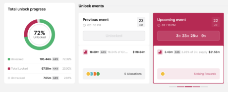 Axie Infinity (AXS) continues to be one of the top performers in the market even though the bear market trend. However, an upcoming token unlock event could put an end to the alt coin’s bullish trend given the amount of tokens involved. $21.7 Million In AXS Set To Be Unlock The upcoming Axie Infinity (AXS) token unlock event is the most notable unlock happening this week. Out of the total $27.4 million in tokens set to be unlocked across the space today, AXS unlocks make up the vast majority. Related Reading: Bearish Signal: BNB Open Interest Skyrockets To New Highs According to the token tracking website Token Unlocks, a total of 3.43 million tokens are set to be unlocked in four days on July 22. Going by the current price of AXS tokens at the time of this writing, this translates to $21.55 million in tokens. $21.55 million in AXS tokens set to be unlocked | Source: Token Unlocks This next unlock will see another 2.96% of the total 270 million supply being sent back into circulation. However, unlike its last token unlock held on April 23, the entirety of this token unlock is going toward staking rewards for users of the platform. Will This Affect The Axie Infinity Token Price? The Axie Infinity (AXS) token unlock will no doubt put bearish pressure on the price of the digital asset. This is because the unlock will increase the circulating supply amid declining demand in the market. As such, AXS’s price could see a decline from July 22. However, it is important to note that as these tokens are only going toward staking, they will likely not hit the market at the same time. Such staggered introduction into the market could mitigate selling pressure, giving the buyers time to garner enough demand to offset the new supply. AXS price at $6.24 | Source: AXSUSD on TradingView.com This is possible though as long as the general crypto market does not succumb to the bear pressure current mounting. If Bitcoin is able to recover above $31,000 once more, then coins like AXS will benefit as market sentiment recovers. Related Reading: Crypto Liquidations Cross $300 Million Amid Massive Market Recovery For now, AXS is still holding steady compared to others in the space. The altcoin is currently changing hands at a price of $6.24, recording a 0.32% decline in the last 24 hours, but seeing 6.86% gains on the 7-day chart. Follow Best Owie on Twitter for market insights, updates, and the occasional funny tweet… Featured image from Crypto Ticker, chart from TradingView.com
